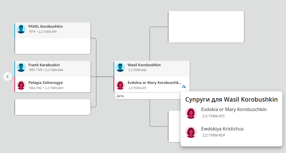 Я так понимаю, что в 2023 году некий «martyvanslette» добавил в дерево сведения о жене Василия, опираясь на какие-то данные, взятые из свидетельства о смерти. Если они взяты из свидетельства о смерти Фёдора, тогда вполне может быть, что жену Василия звали Евдокия Кристичус.