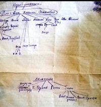 Сведения о детях Нестера Васильевича взяты со схемы, составленной Евгением Коробушкиным. На этой же схеме обозначен муж дочери Натальи – Сергей и трое их детей. Это Ваня, Лида (Пел). К сожалению, схема обрезана и имя первого потомка Нестера прочитать нельзя (заканчивается на «а»).