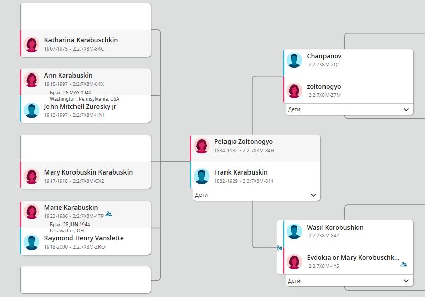 Сведения о Коробушкиной Перле, жене Коробушкина Фёдора Васильевича, взяты с американских генеалогических сайтов «FamilySearch» и «MyHeritage»