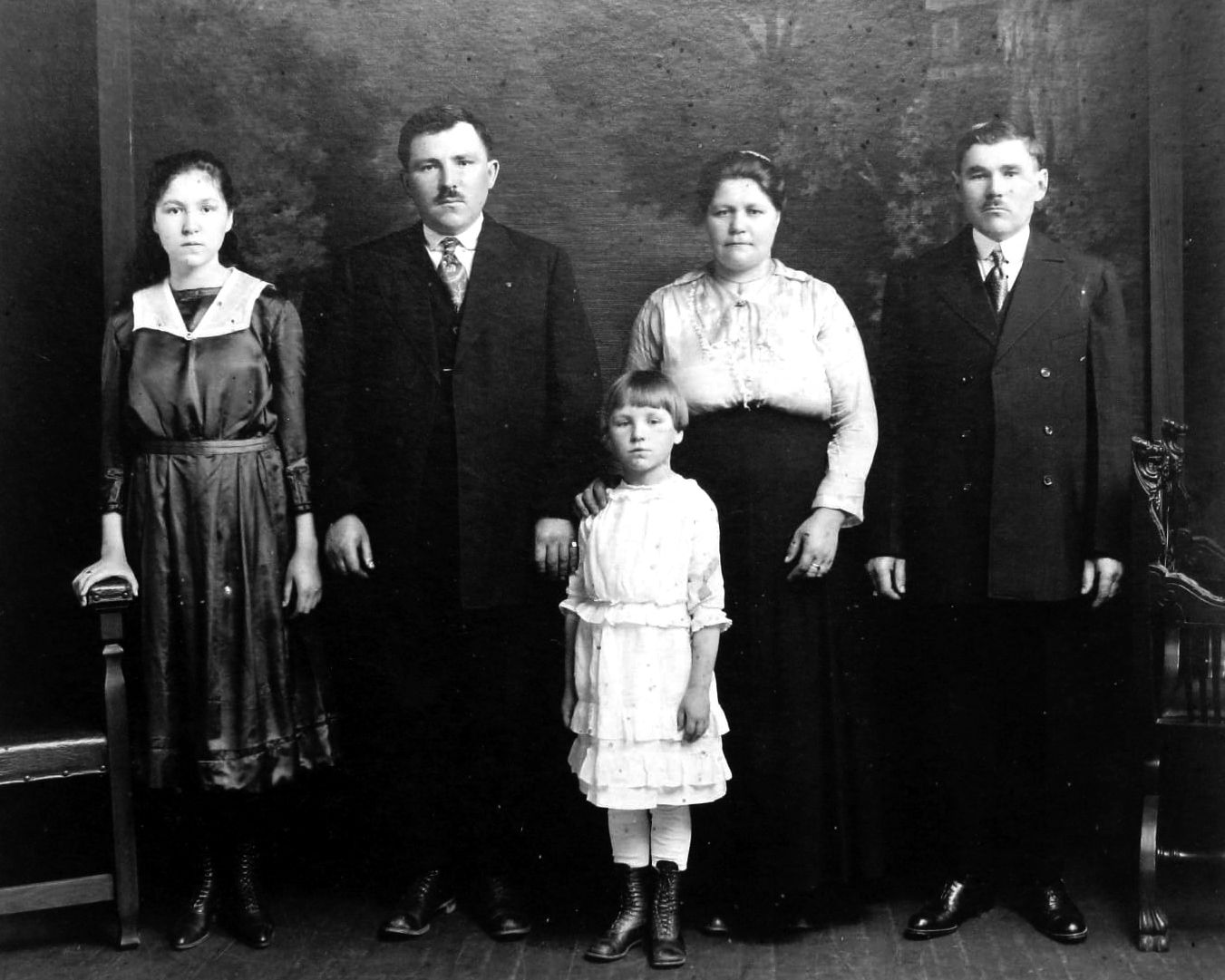 На первой семья– Фёдора (брата Павла) и Перлы-Пелагеи. На ней, слева – направо, запечатлены дочь Анна, Фёдор, Пелагея, их дочь Мария. Крайний справа – Павел.