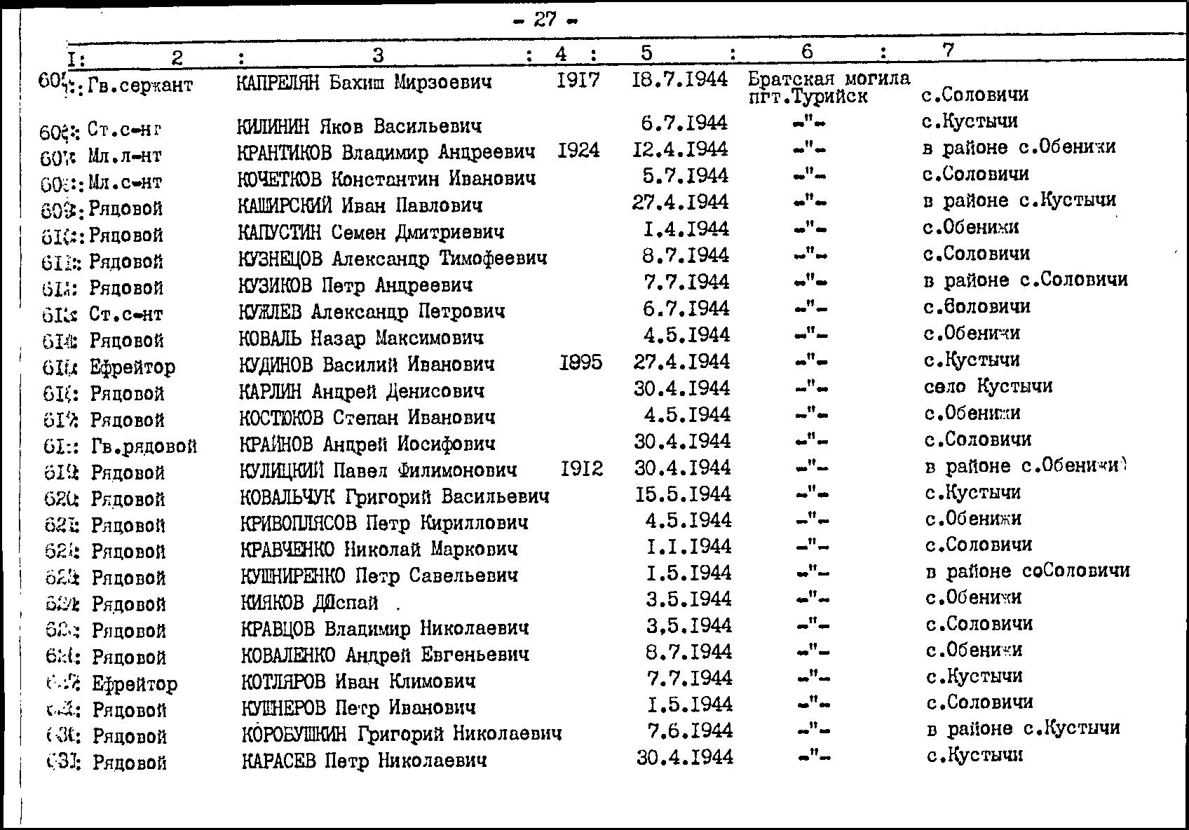 Слева – фото братской могилы в пос. Турийск, куда был перезахоронен Коробушкин Григорий. Оно было скопировано лет 7 тому с сайта «Фото-планета». В настоящее время это фото на данном сайте отсутствует.
